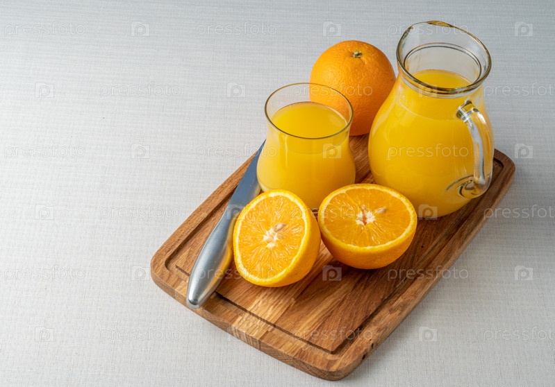 Апельсиновый сок на столе крупным планом. Концепция здорового питания. Свежий сок