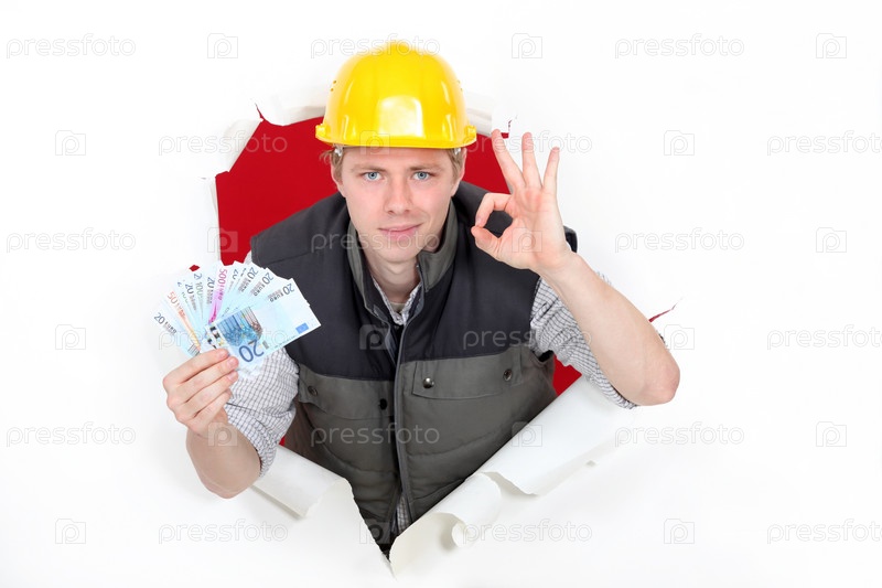 Рабочий с деньгами делает знак ОК