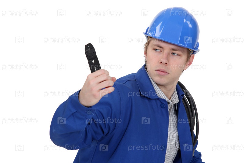 Недружелюбный рабочий с парой кусачек
