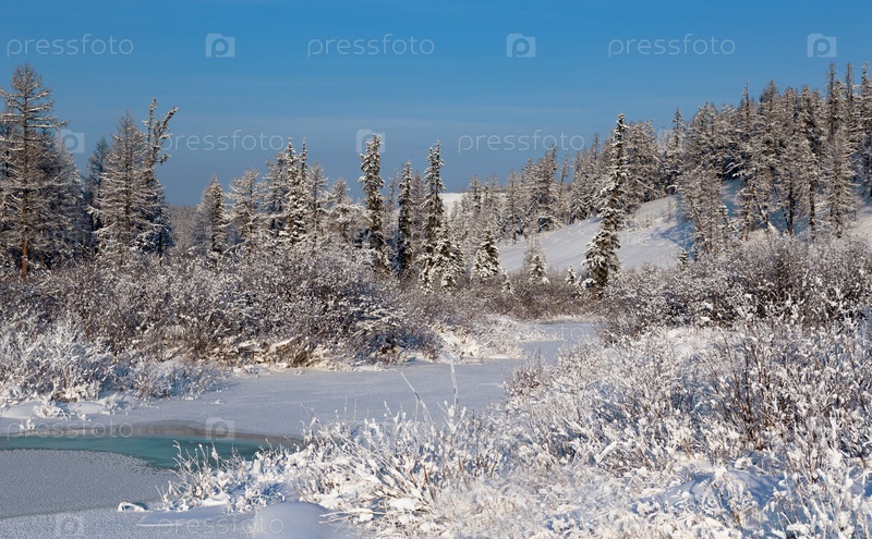 Зимний пейзаж с ручьем