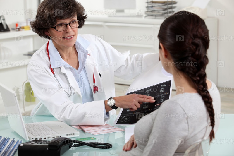 Женщина-врач с пациентом