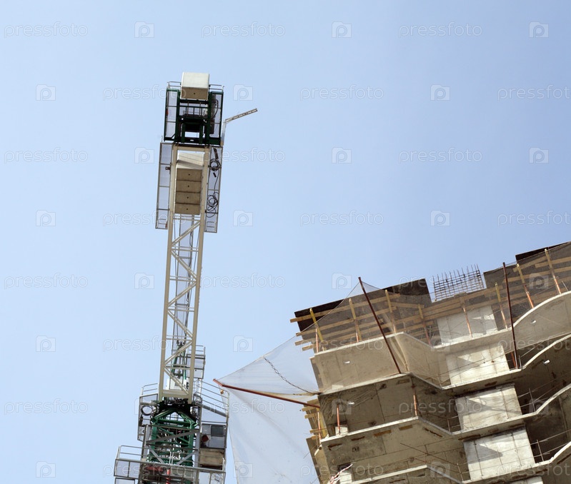 Дом развивается с краном днем