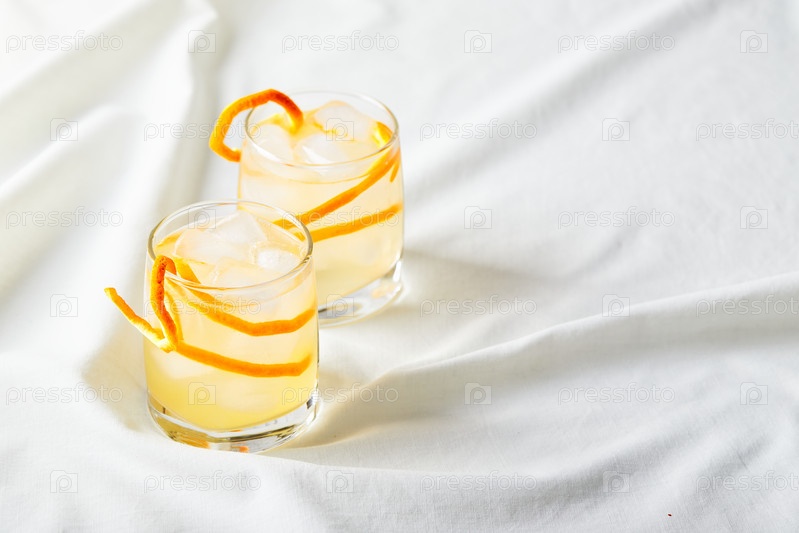 Прохладный освежающий алкогольный коктейль, украшенный цедрой апельсина