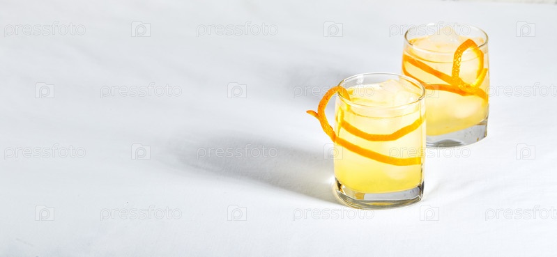 Прохладный освежающий алкогольный коктейль, украшенный цедрой апельсина