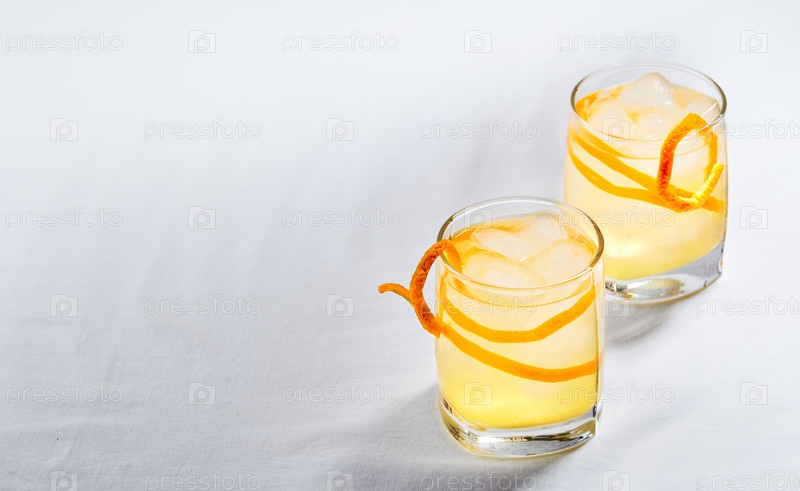Прохладный освежающий алкогольный коктейль, украшенный цедрой апельсина