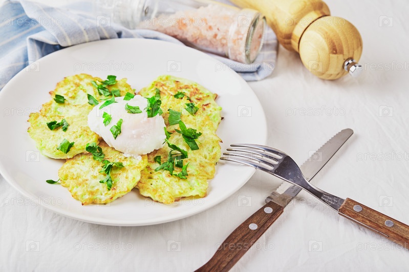 Кабачковые оладьи с яйцом пашот