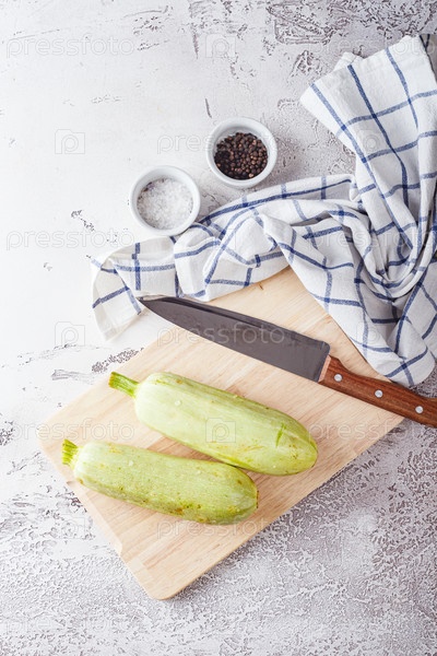 Свежие кабачки на деревянной доске с ножом