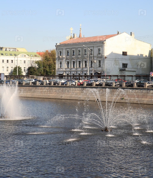 Много фонтанов на реке