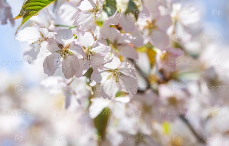 Баннер. Вишневый цвет в Москве. Обои весна, природа. Японская вишня в саду. Цветущие почки на ветвях дерева в японском саду в дендрарии. Макро фотография. Россия, Царицыно