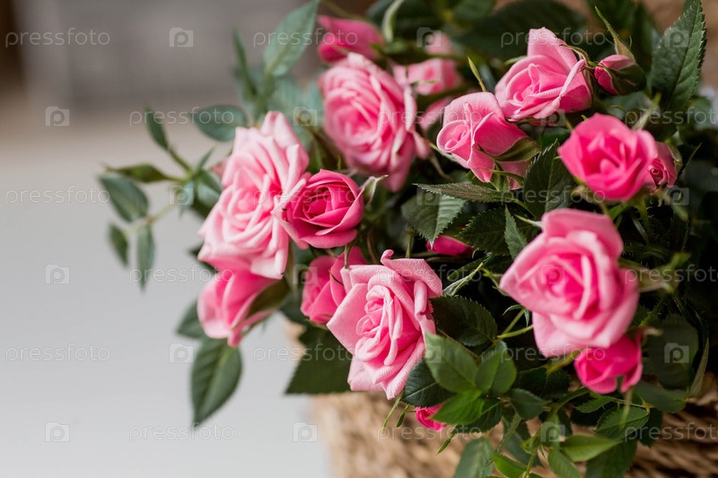 Уход за домашними растениями в домашних условиях. Домашние цветы. Розы на окне в стильных плетеных корзинах. Выращивание растений
