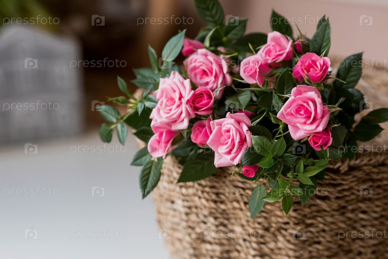 Уход за домашними растениями в домашних условиях. Домашние цветы. Розы на окне в стильных плетеных корзинах. Выращивание растений
