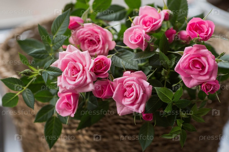 Уход за домашними растениями в домашних условиях. Домашние цветы. Розы на окне в стильных плетеных корзинах. Выращивание растений