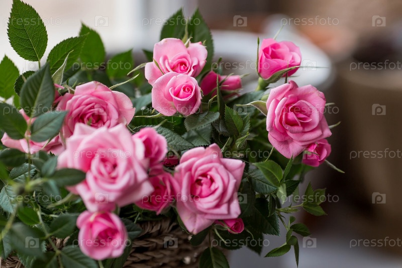 Уход за домашними растениями в домашних условиях. Домашние цветы. Розы на окне в стильных плетеных корзинах. Выращивание растений