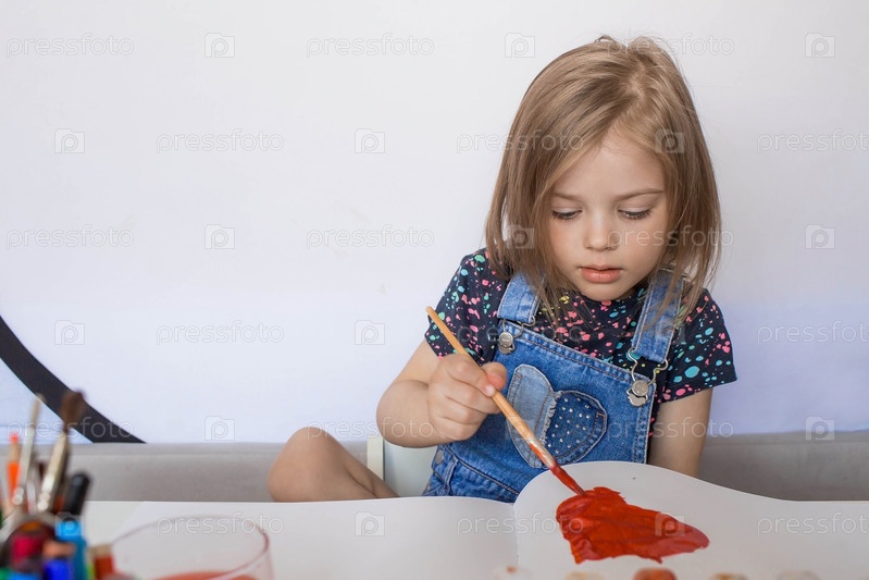 Искусство и творчество. Счастливая маленькая девочка 4 лет рисует на бумаге. Детские игры для развития ребенка. Детский сад