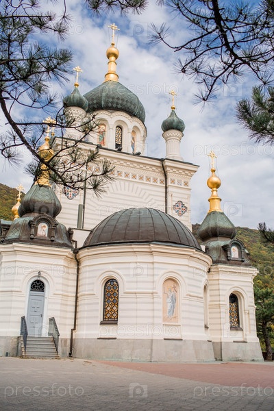 Красивая Воскресенская церковь на горе у моря. Форос. Россия, Крым, октябрь (2018)