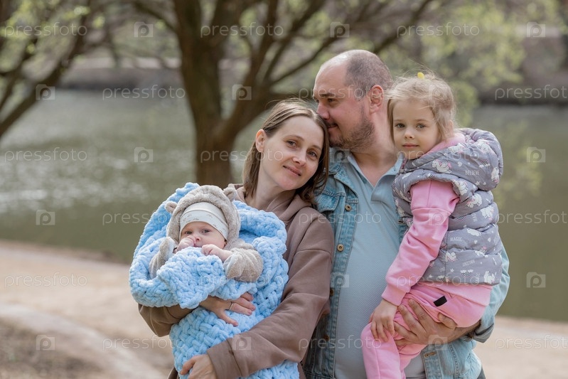 Семья.Отец. Молодая мама держит на руках очаровательного сынишку. Малыш смотрит в камеру и улыбается. Портрет красивого пухлого 4-месячного ребенка