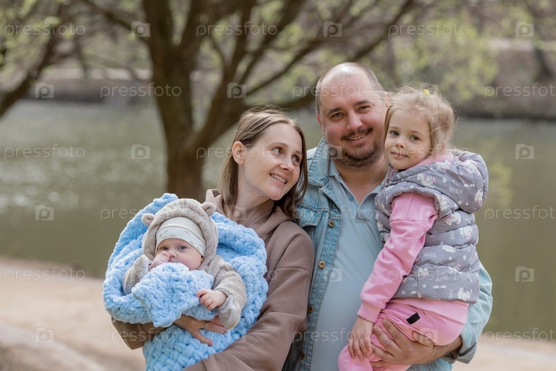 Семья.Отец. Молодая мама держит на руках очаровательного сынишку. Малыш смотрит в камеру и улыбается. Портрет красивого пухлого 4-месячного ребенка