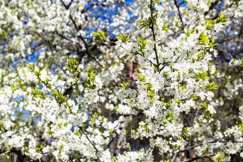Пышные белые цветения вишневого дерева в городском парке