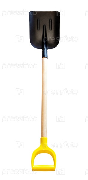 Стальная лопата с деревянной ручкой, изолированная на белом