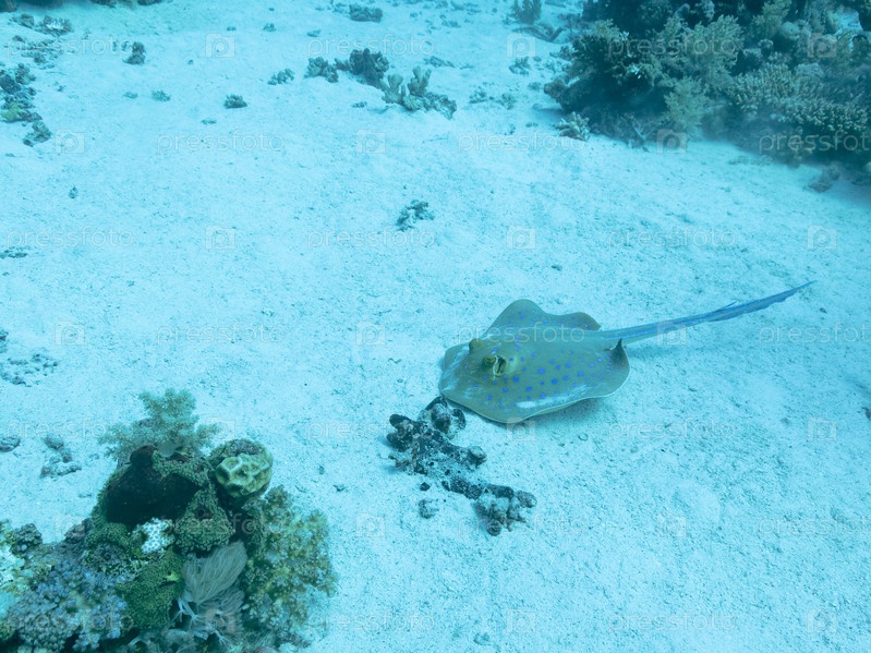 Белый пятнистый орлиный скак или Aetobatus narinari в глубине Красного моря, концепция путешествия