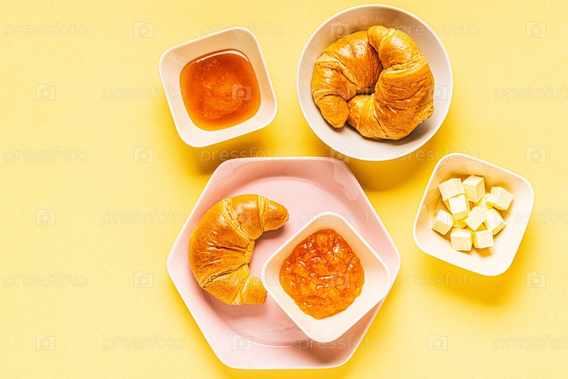 Круассаны на завтрак на желтом фоне