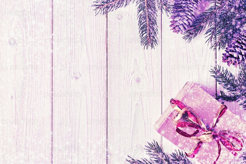 Рождественские подарочные коробки и елка на деревянном фоне