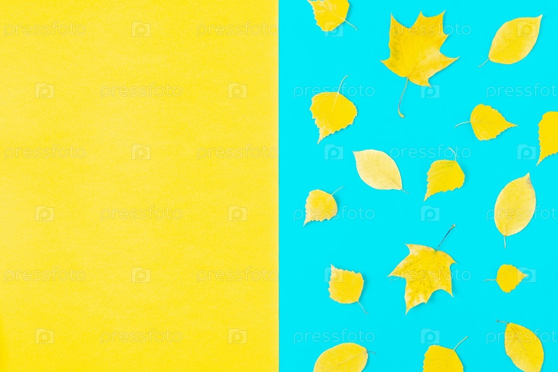 Осенние желтые листья на синем фоне