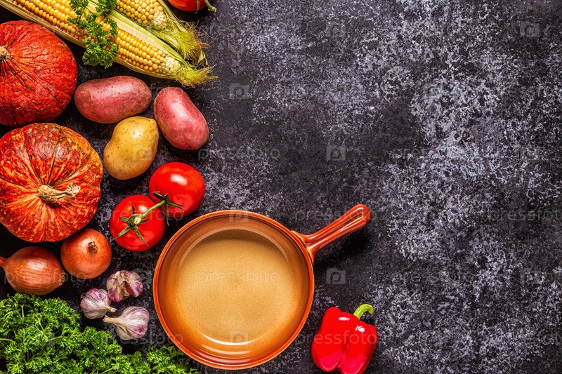 Свежие осенние овощи для приготовления пищи на темном фоне