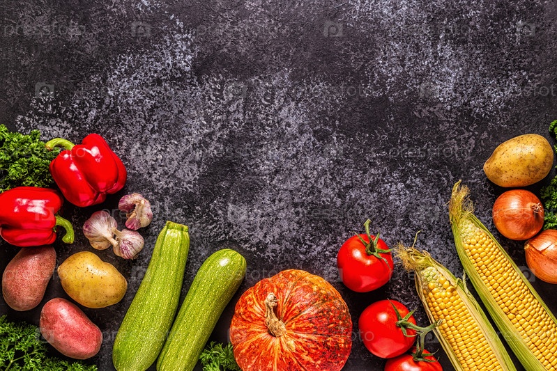 Свежие осенние овощи для приготовления пищи на темном фоне