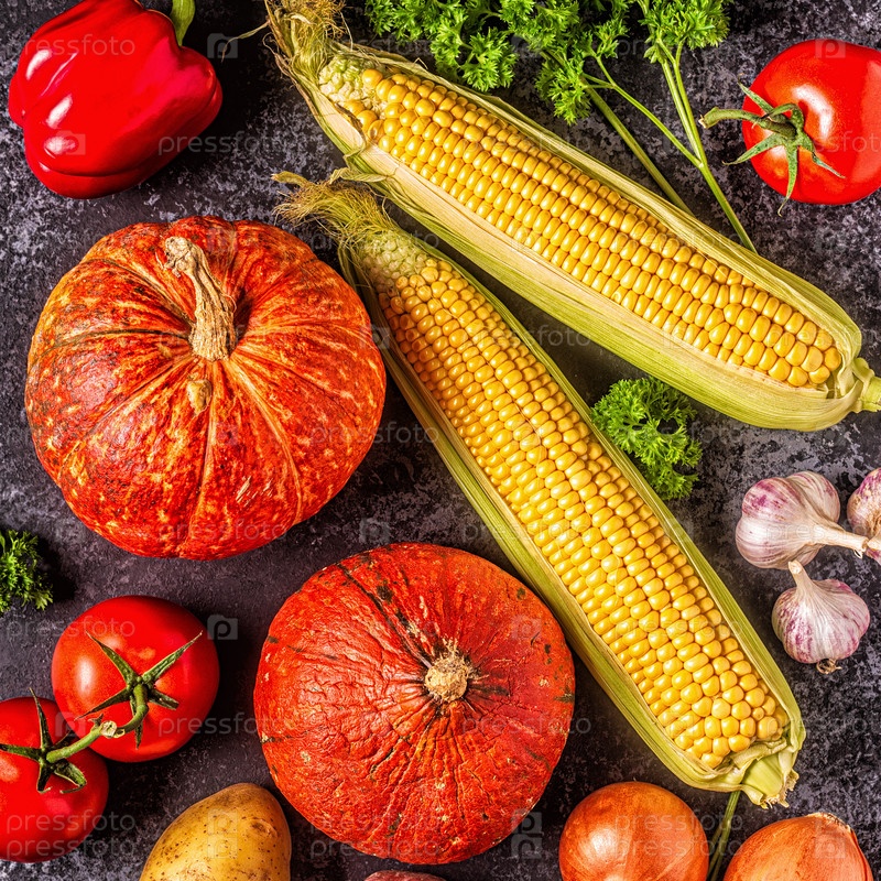 Свежие осенние овощи для приготовления пищи на темном фоне