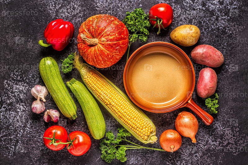 Свежие осенние овощи для приготовления пищи на темном фоне