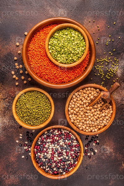 Ассортимент бобовых - чечевица, горох, мунг, нут и разные бобы