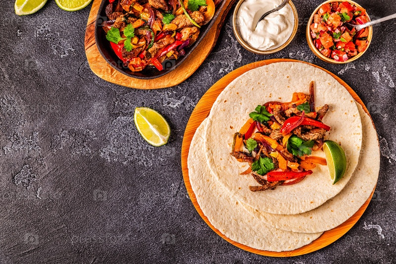 Фахитас с цветным перцем и луком, подается с лепешками