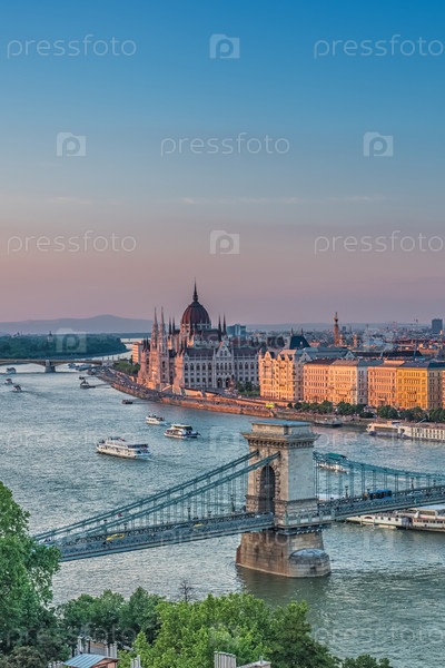 Панорама Будапешта на закате. Венгерские достопримечательности