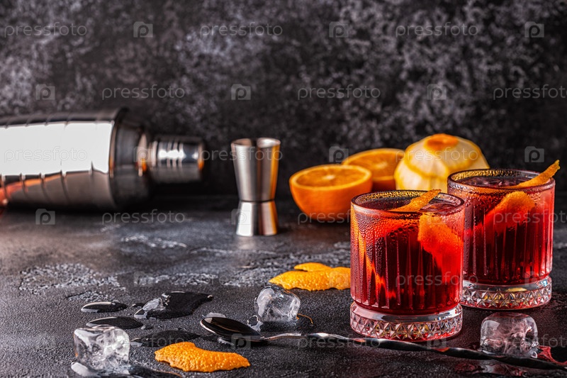 Коктейль Негрони с апельсиновой цедрой и льдом