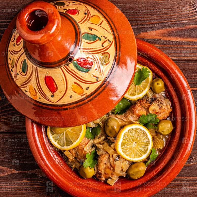 Традиционный марокканский тажин из курицы с солеными лимонами и оливками
