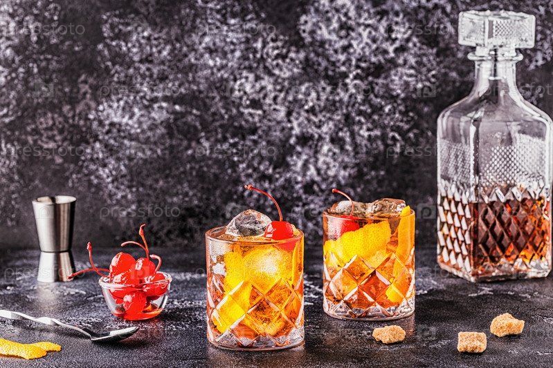 Старомодный коктейль с вишней и апельсиновым твистом