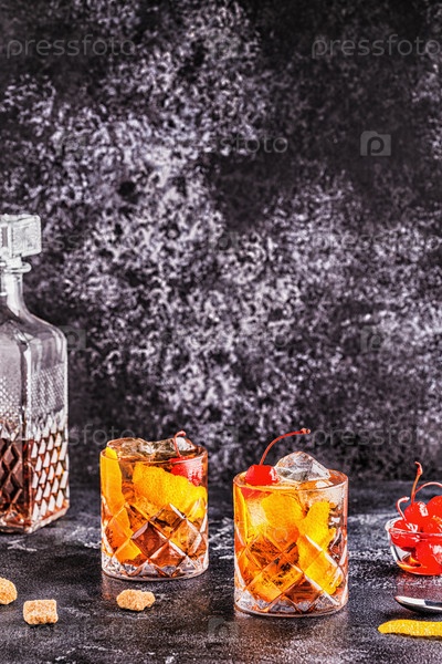 Старомодный коктейль с вишней и апельсиновым твистом