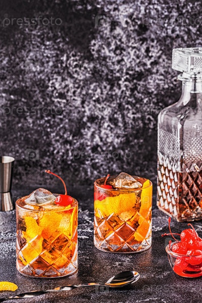 Старомодный коктейль с вишней и апельсиновым твистом