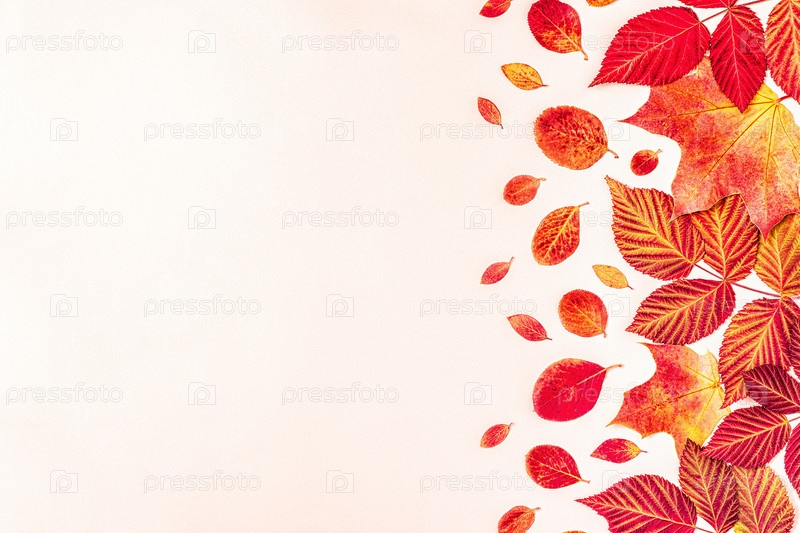 Яркие красные листья на пастельном фоне