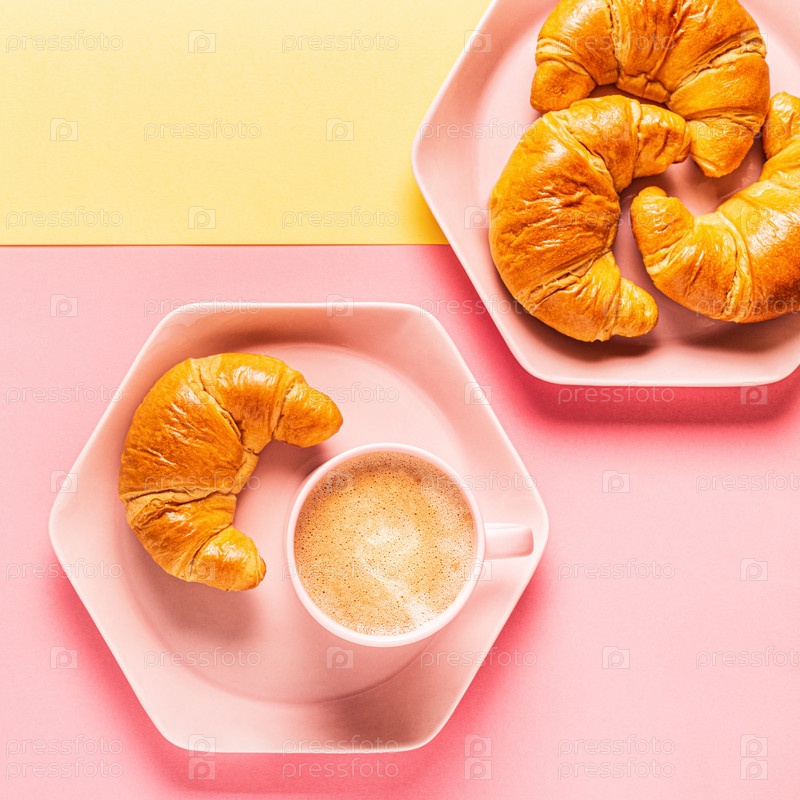 Кофе и круассаны на ярком модном фоне