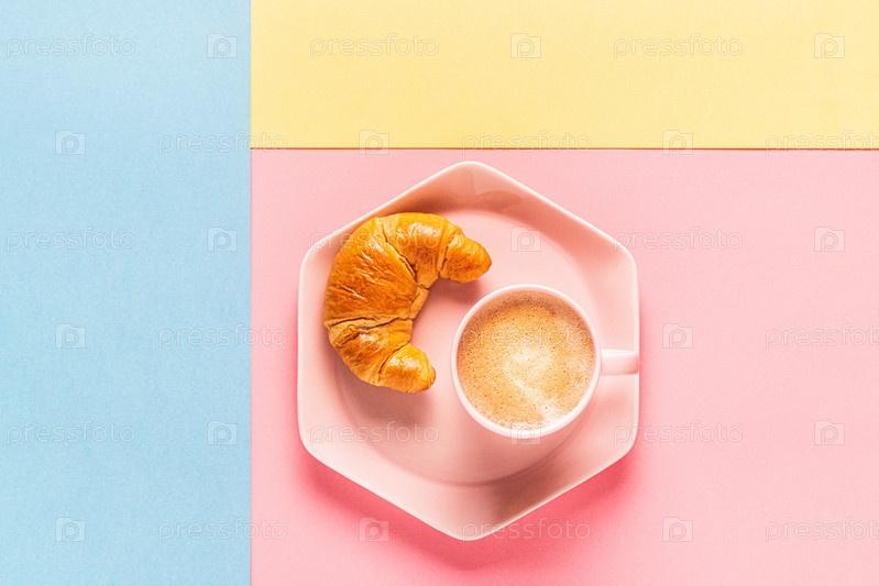 Кофе и круассаны на ярком модном фоне