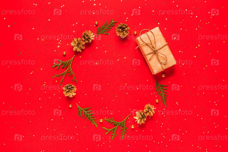 Рождественская композиция на красном фоне
