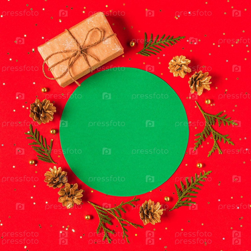 Рождественская композиция на красном фоне