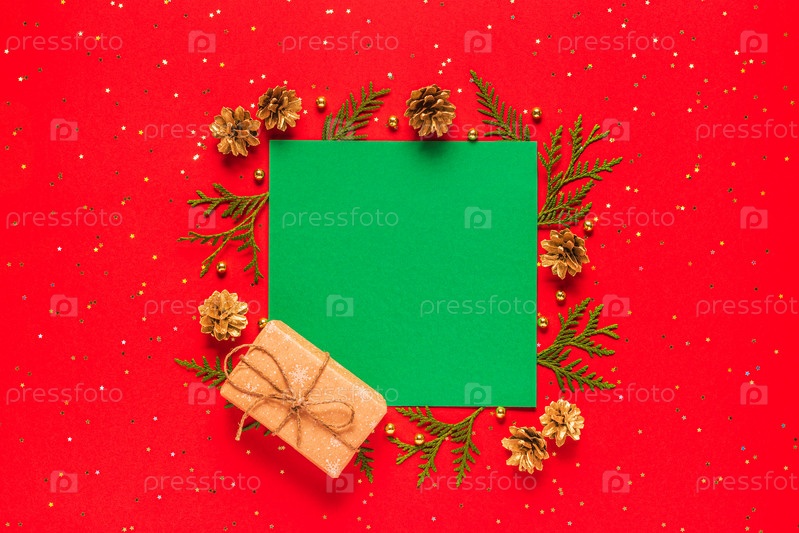 Рождественская композиция на красном фоне