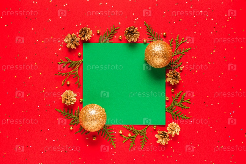 Рождественская композиция на красном фоне