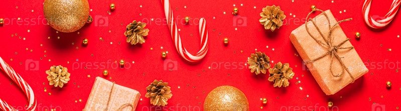 Рождественская композиция на красном фоне