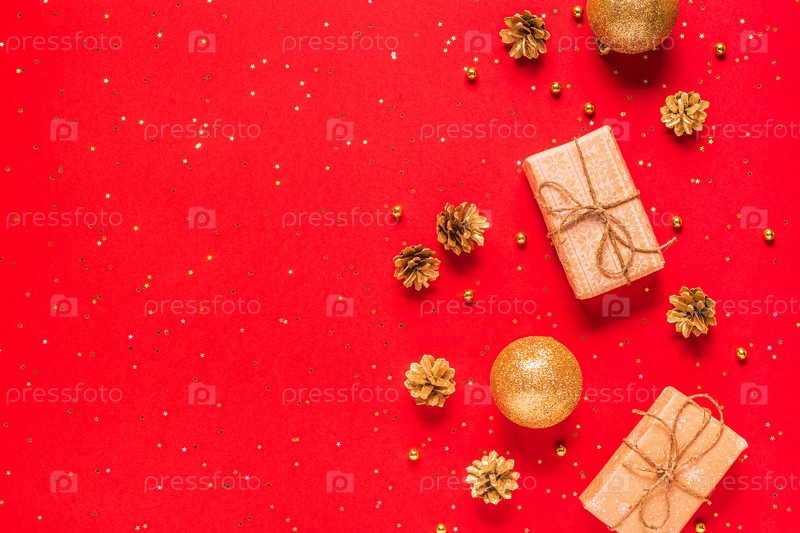 Рождественская композиция на красном фоне