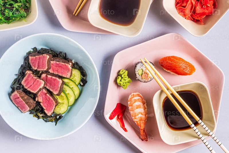Стол с традиционной японской едой