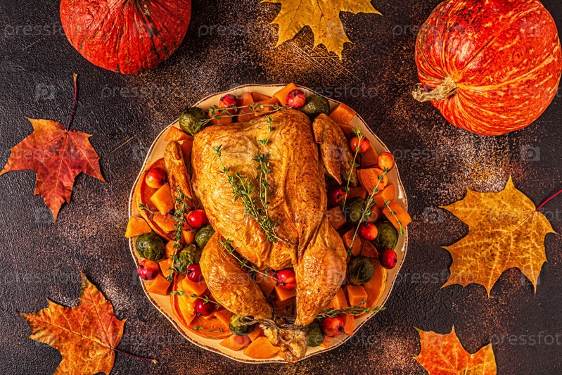 Подается жареная индейка/курица с овощами